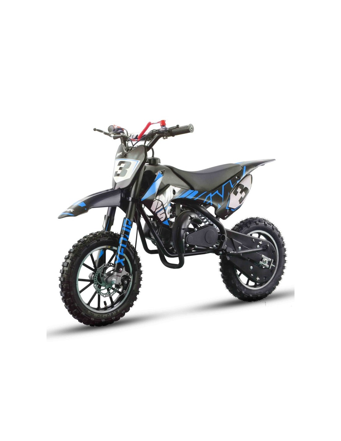 La mejor manera para iniciar a los peques en tierra con la minicross 50 modelo Black Series de IMR. Motor de 50cc y con arranque por tirador. Seguridad en todo momento con sus protecciones antiquemaduras en escape y protector de cadena, horquilla invertida de 550mm y amortiguador no regulable de 210mm. Discos de freno de 140mm y coloridas ruedas de 10 pulgadas.