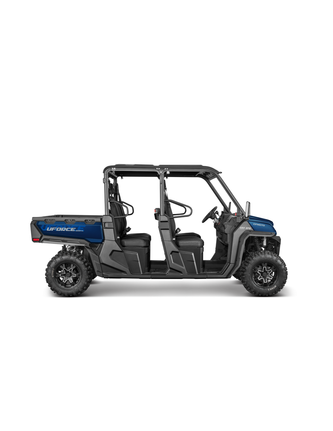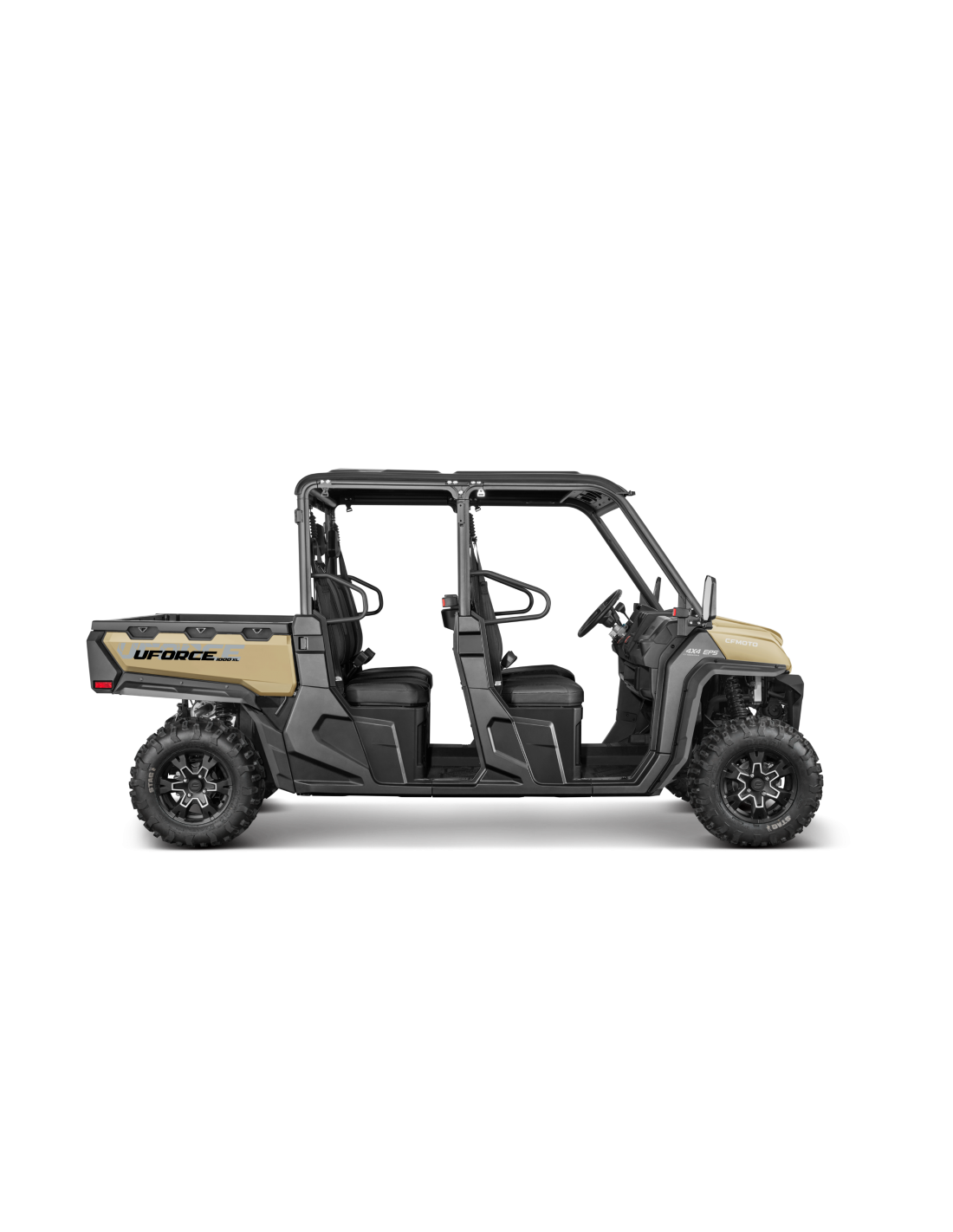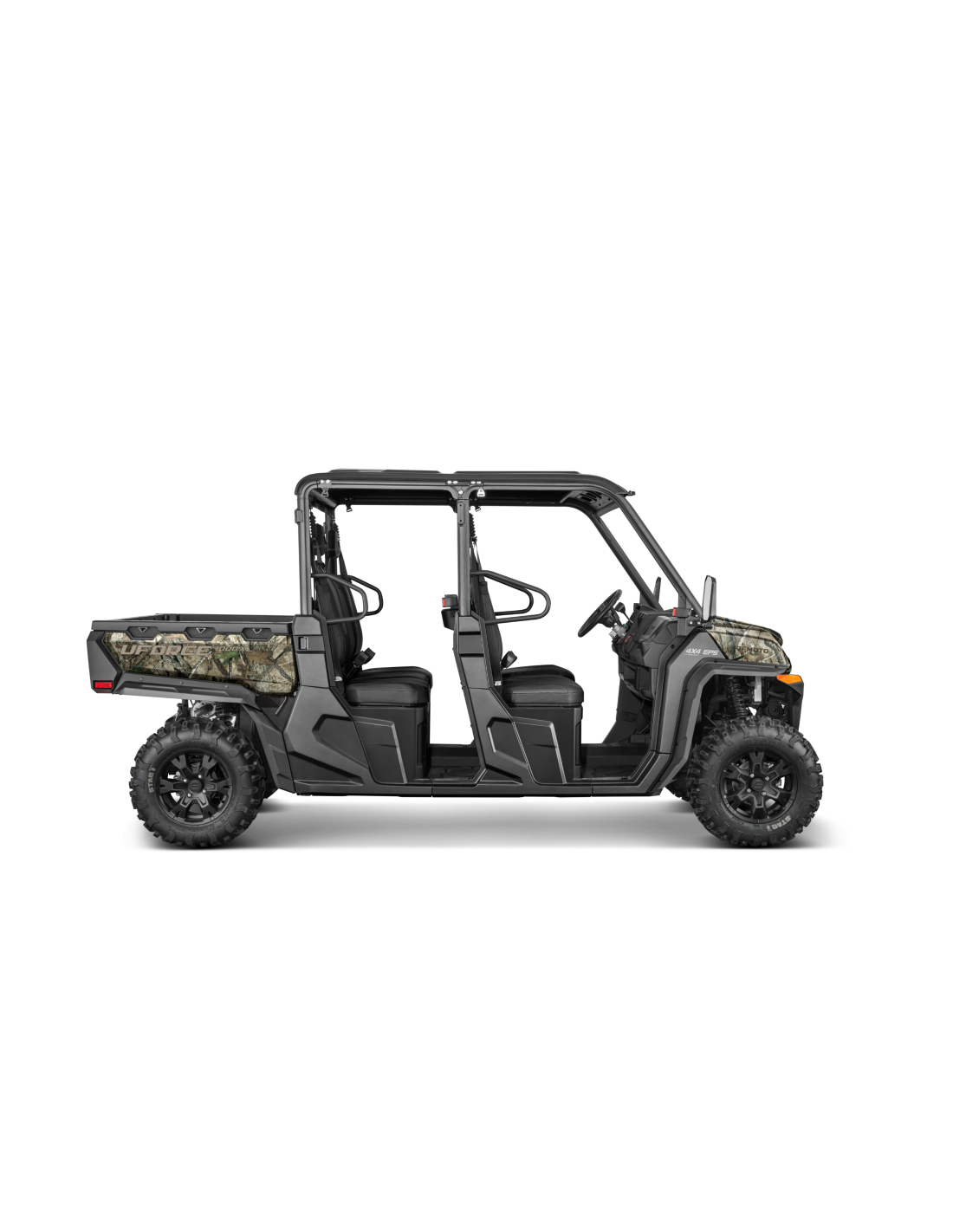 Dimensiones Grandes y Seguras: El exterior del UFORCE 1000 XL garantiza un amplio espacio de carga y de viaje. Con una configuración de asientos de doble fila 3+3, la cabina tipo furgoneta acomoda fácilmente a una familia de seis personas. Incluye cinturones de seguridad para todos los ocupantes, refuerzo de la estructura de la carrocería en áreas estratégicas y el uso de materiales de alta calidad.
