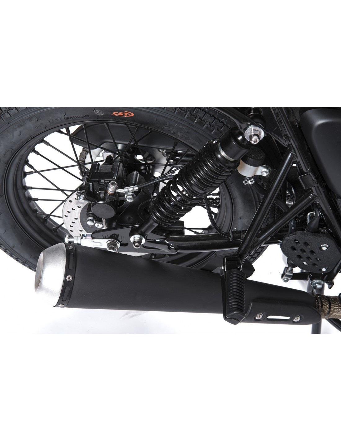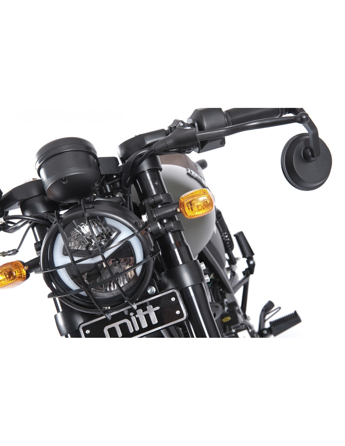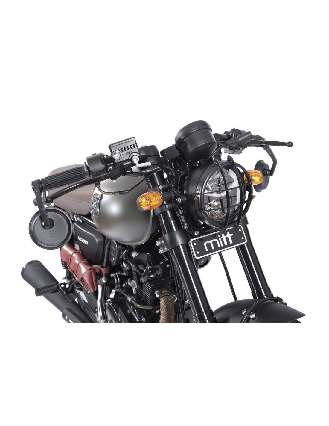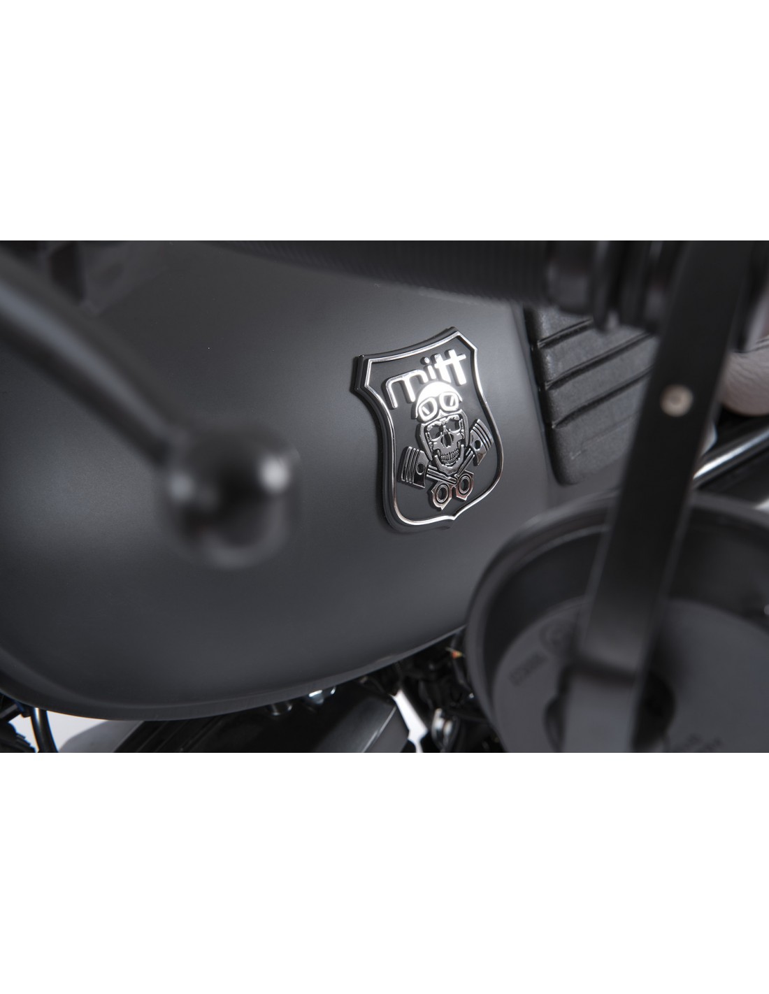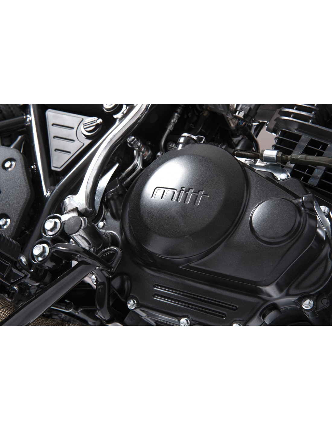 EQUIPACIÓN OPCIONAL: Se puede equipar con los accesorios opcionales que ofrece MITT: una alforja lateral, un protector para el faro y una cinta anti-calórica para el colector del escape.