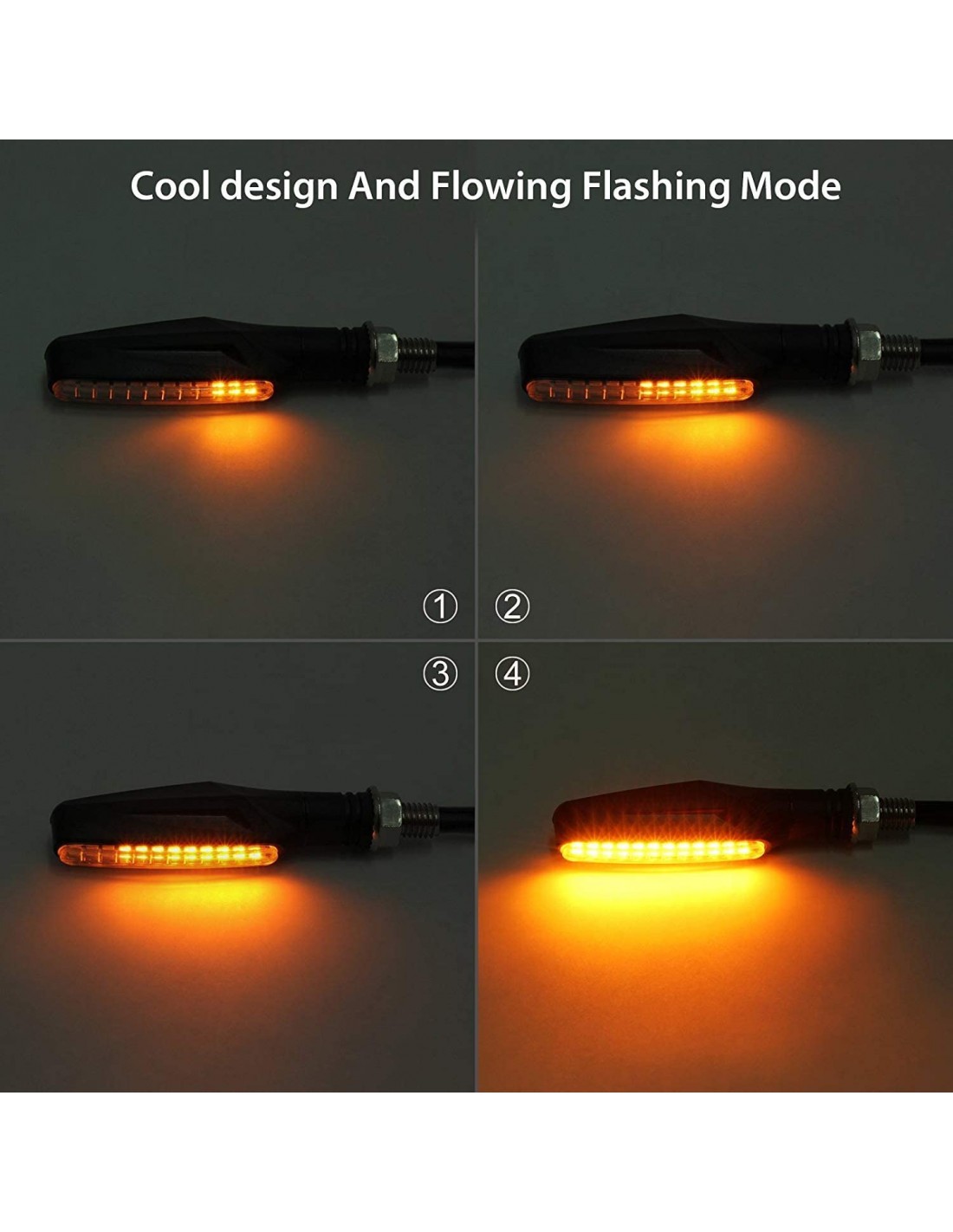 Indicadores dinámicos de motocicleta hechos de plástico resistente,muy buena calidad,a prueba de agua IP65, lo hacen resistente al daño por agua,muy flexibles por si le das accidentalmente no rompe.Con 12 LEDS en indicadores individuales, y las perlas del brillo de luz lateral SMD de alto brillo consumen menos energía.