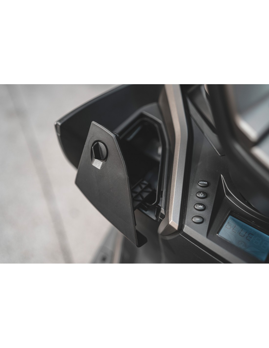 COMPARTIMENTO EXCEPCIONAL: Y, como no puede ser de otro modo, bajo el asiento posee un generoso espacio para poder guardar un casco integral y más cosas; su apertura se lleva a cabo a través de un sencillo sistema neumático que mantiene el asiento abierto; iluminación del compartimento automática mediante sensor crepuscular.